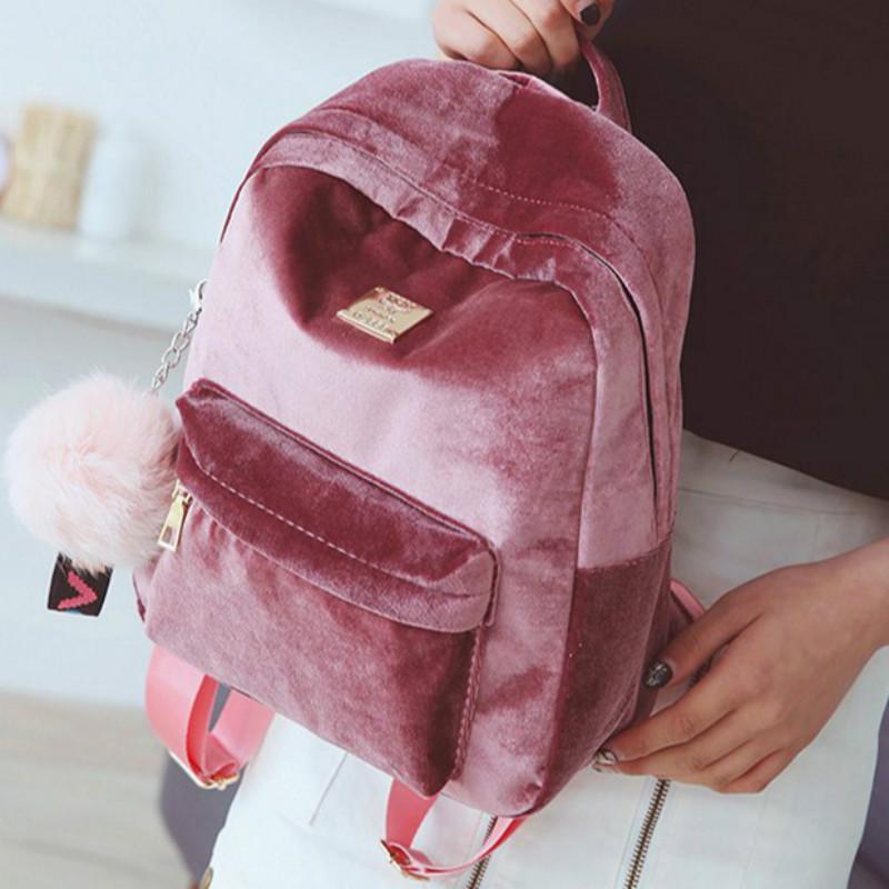 Надзвичайно милий оксамитовий рюкзак для модних дівчат отримав найстильніші та найпопулярніші забарвлення. Оригінальний виріб має компактні розміри — 32х24х9 см. Зручне внутрішнє відділення дасть змогу без зусиль вмістити всі улюблені речі: необхідні ґаджети, конспекти, косметичку, мобільний та інші.